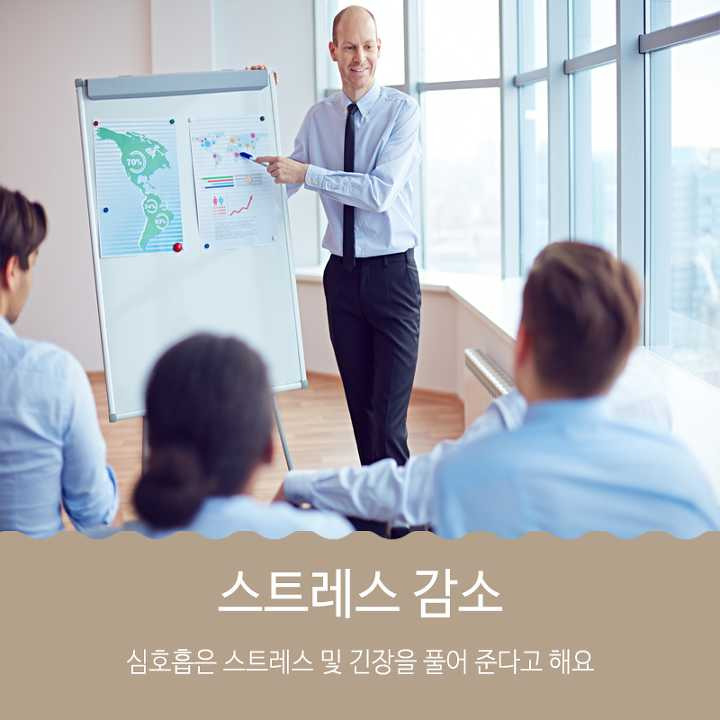 심호흡은 스트레스 해소에 좋은 방법 중 하나라고 합니다. 중요한 미팅이나 약속이 있을 때 심호흡을 하는 것 만으로도 스트레스와 긴장감이 감소한다고 하네요 Hít thở sâu là một trong những phương pháp tốt nhất để giải tỏa căng thẳng (Stress). Chỉ cần hít một hơi thật sâu khi bạn có một cuộc họp hoặc cuộc hẹn quan trọng sẽ làm giảm cảm giác căng thẳng và Stress đấy.