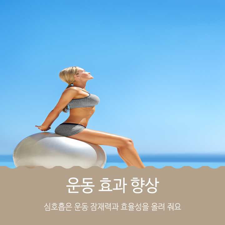 심호흡에 집중하면서 운동을 하면 운동 효과가 좋다고 합니다. 가슴을 넓게 펴고 심호흡을 해주면 가슴(횡경막) 근육이 이완되어 스태미너와 잠재적 신체 운동능력이 올라간다고 합니다. Nếu bạn tập thể dục vừa tập trung vào việc hít thở sâu, sẽ cải thiện hơn hiệu quả tập luyện. Mở rộng lồng ngực của bạn và hít thở sâu sẽ thư giãn cơ ngực (cơ hoành), tăng sức chịu đựng và khả năng tiềm tàng cơ thể của bạn.